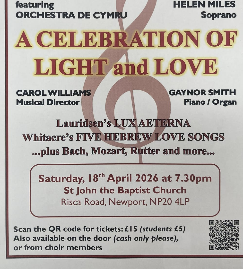 Saturday 18 April 2026 - 7.30pm Spring Concert, St John the Baptist Church, Risca Road, Newport NP20 4LP
